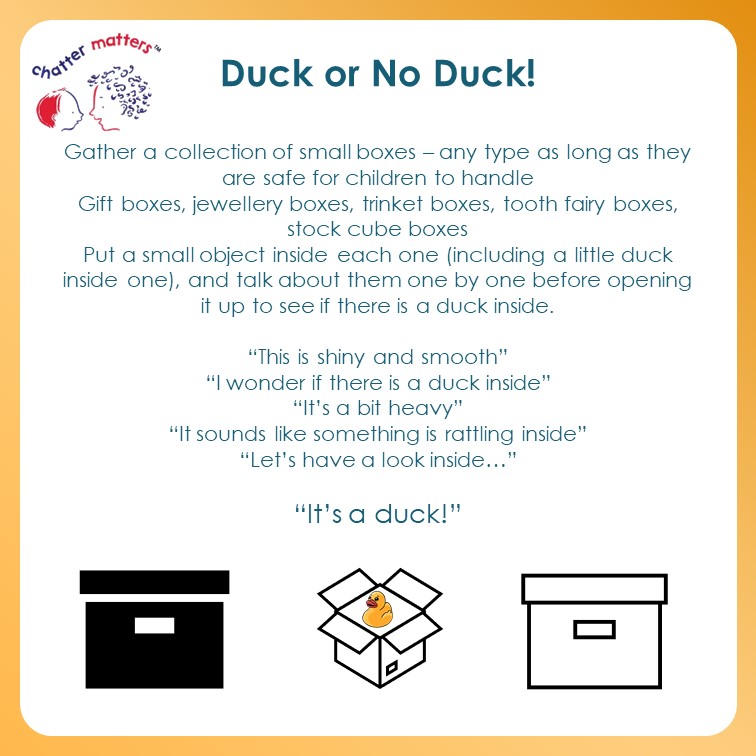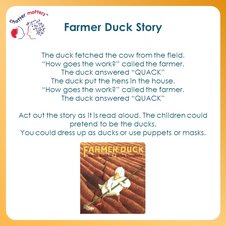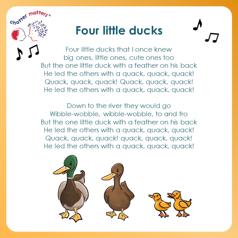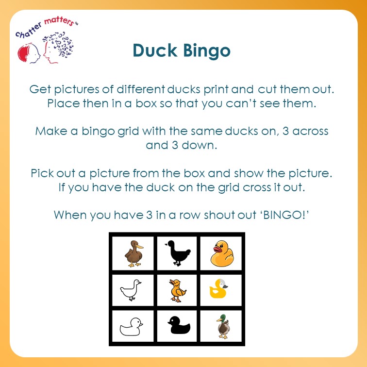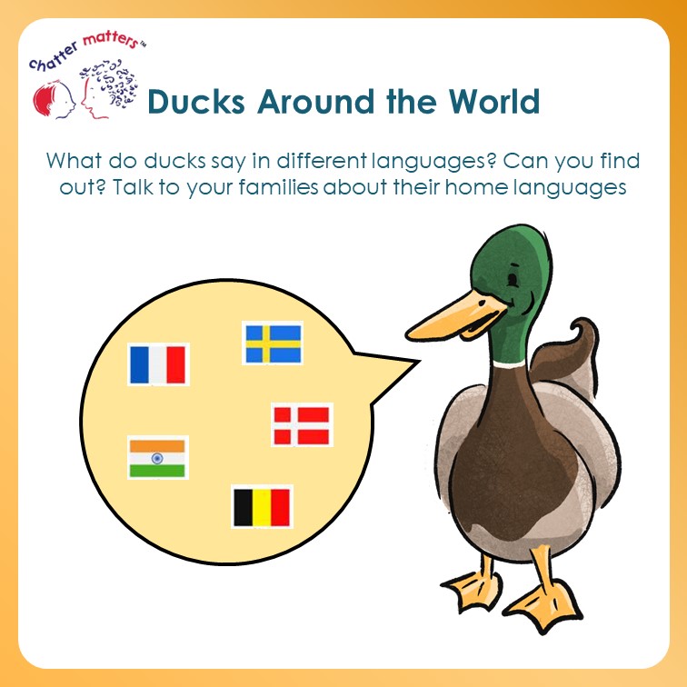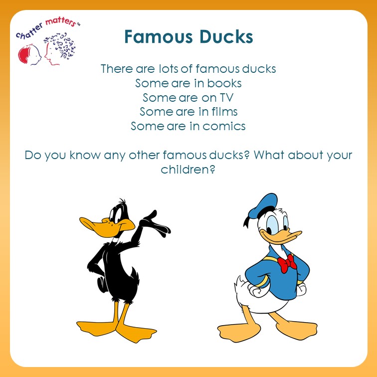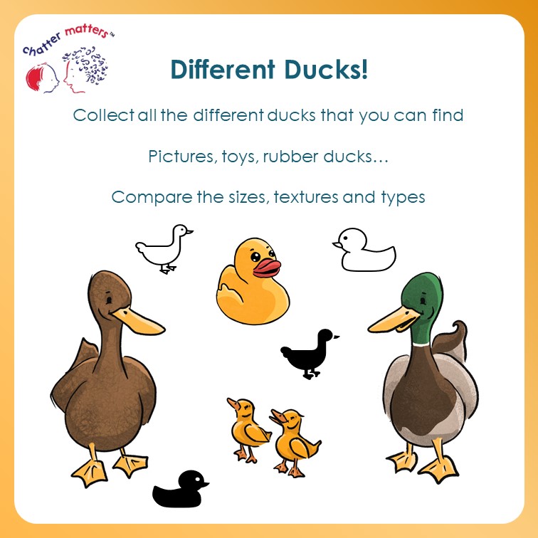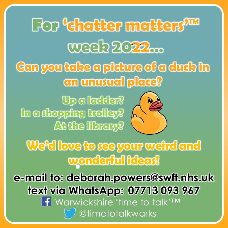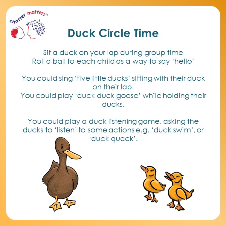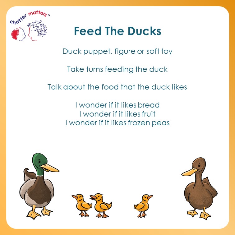 We are celebrating children’s communication with two little ducks (a link to the year 2022). Here are some resources that you can use to help share messages around the value of communication themed around ducks! First, a poster to print…