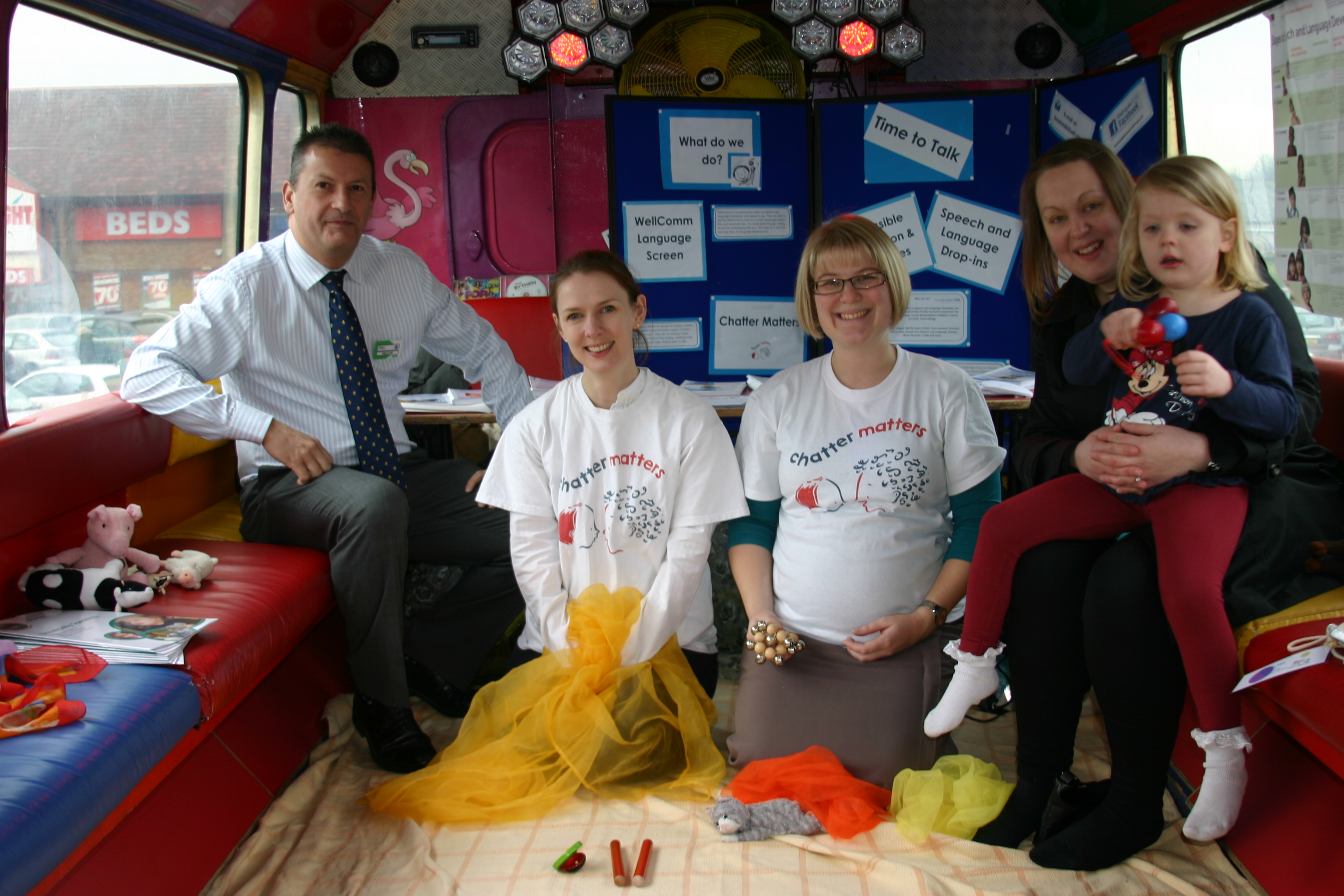 In March 2014 we took the newly signposted ‘chatter matters™’ party bus around the county for families and settings to visit for playing, singing, sliding and to find out more about speech, language and communication. We welcomed lots of families, shared lots of stories, sang lots of songs and blew lots of bubbles.